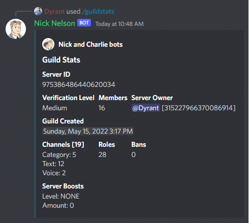 The guild stats command shows information about your guild